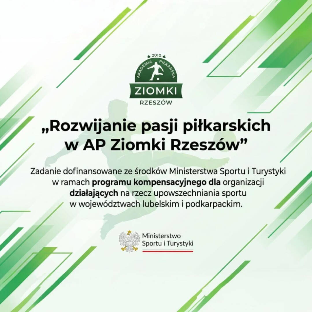 Z ogromną radością informujemy, że AP Ziomki Rzeszów otrzymała dotację z Ministerstwa Sportu i Turystyki w ramach Programu Kompensacyjnego na realizację zadania związanego ze szkoleniem dzieci i młodzieży.